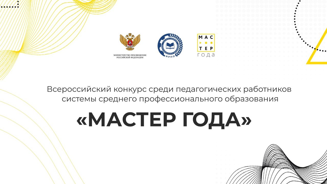 Всероссийский конкурс среди педагогических работников системы среднего профессионального образования «Мастер года» проводится с целью формирования и развития кадрового потенциала системы среднего профессионального образования. Всероссийский конкурс проводится для мастеров производственного обучения или преподавателей учебных дисциплин, профессиональных модулей, междисциплинарных курсов, практик профессионального цикла. Учредитель конкурса «Мастер года» Министерство просвещения Российской Федерации. Федеральный оператор – ФГБОУ ДПО “Институт развития профессионального образования”. Соорганизатор – Общероссийский профсоюз образования.